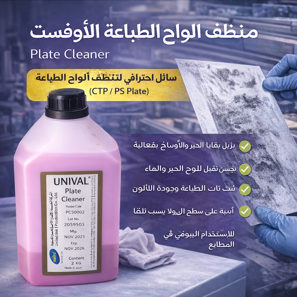 :هو سائل مخصص لتنظيف ألواح الطباعة الأوفست  قبل أو أثناء التشغيل، لإزالة